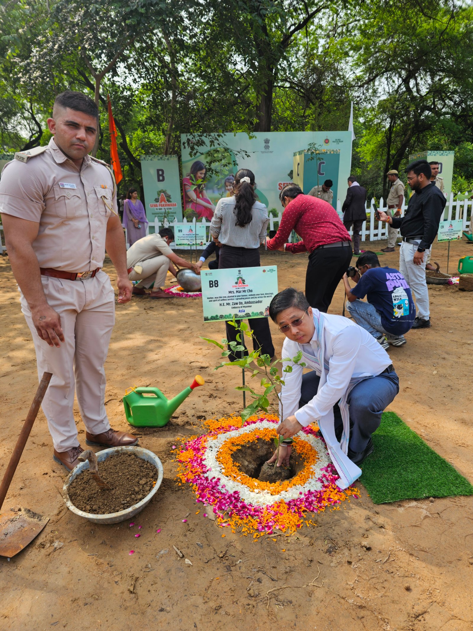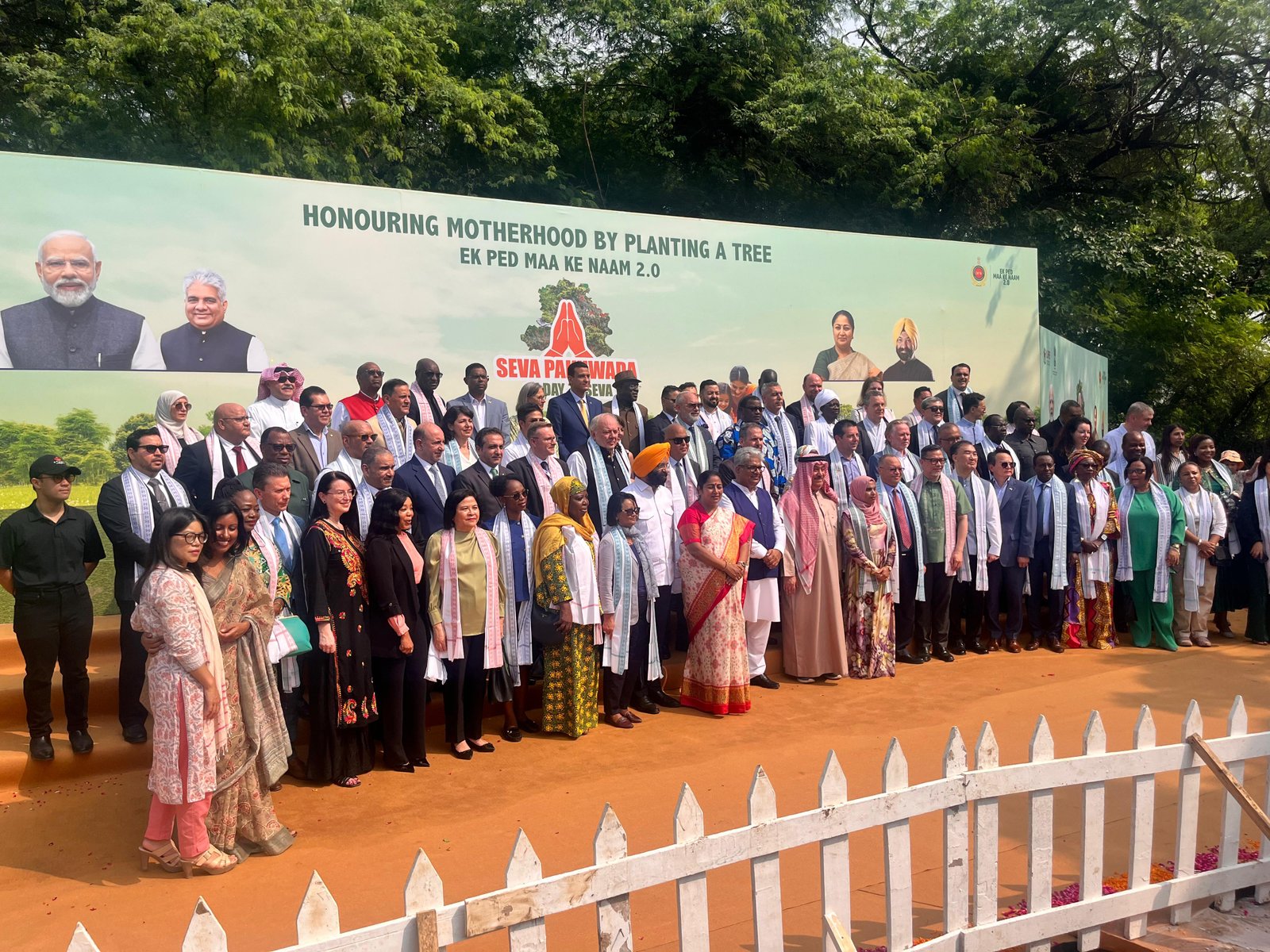 The tree planting ceremony was led by Hon’ble Union Minister of Environment, Forest and Climate Change of India, together with the Hon’ble Chief Minister of the National Capital Territory of Delhi, as part of the Seva Pakhwada – a 15-day nationwide programme of voluntary service to commemorate the 75th birthday of Hon’ble Prime Minister Shri Narendra Modi. The ceremony was attended by Ambassadors, Chargés d’Affaires, Envoys from over 70 countries and senior government officials.