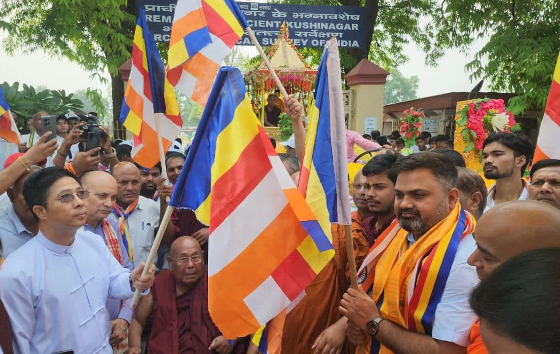 On May 12, 2025, His Excellency Mr. Zaw Oo, Ambassador of Myanmar to India, attended the Buddha Day Ceremony , organized by the Most Venerable Sayadaw Bhaddanta Dr. Ñāṇissara, Abhidhaja Mahārattha Guru, Abhidhaja Agga Mahā Saddhammajotika, Agga MahāSaddhammajotikadhaja, and Agga Mahā Paṇḍita, President of the Kushinagar Bhikkhu Sangha. Under the guidance of the Most Venerable Sayadaw, H.E. Mr. Zaw Oo, alongside officials from Uttar Pradesh, participated in the Buddha Day Ceremony at the Myanmar Buddha Vihar in Kushinagar.