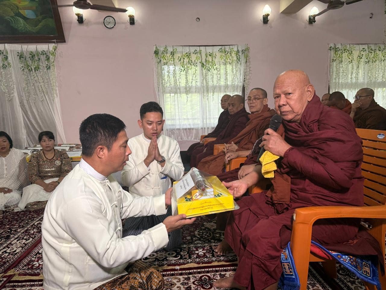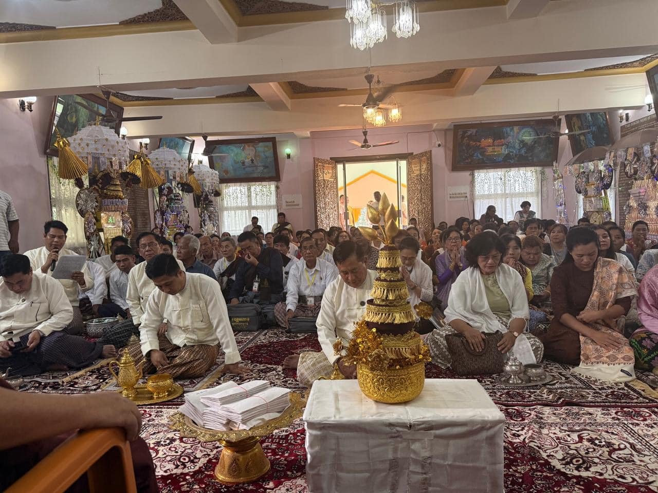 The Government of the Republic of the Union of Myanmar annually commemorates the Kathina Robes Donation Ceremony at the Myanmar Monastery in Bodh Gaya, India. This year, the 17th ceremony was held on 17 October 2025 at the Myanmar Monastery in Bodh Gaya, Bihar State, India. The ceremony was attended by His Excellency Mr. Aye Tun, Deputy Minister for Religious Affairs and Culture; Mr. Zaw Oo, Ambassador of Myanmar to India; Mr. Thein Win, Director-General of the Department for the Promotion and Propagation of the Sasana, and officials from the Ministry of Religious and Culture Affairs, Embassy of Myanmar in New Delhi and the Myanmar Military Attache Office in New Delhi(Army, Navy, and Air).