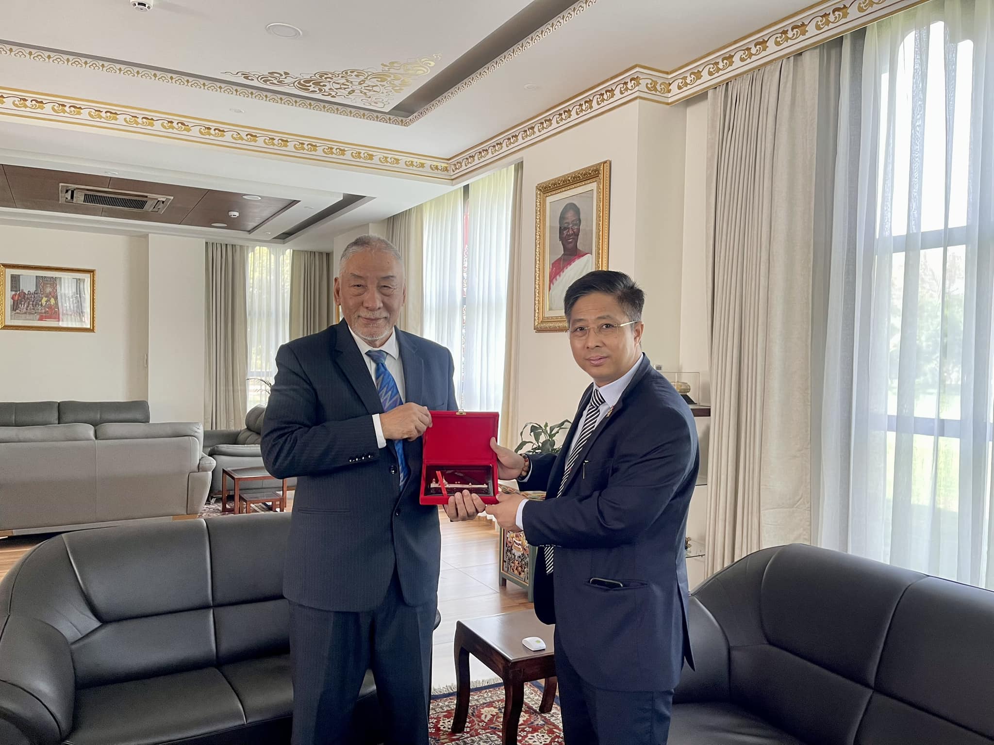 H.E. Mr. Zaw Oo, Ambassador of Myanmar to India, met H.E. Major General Vetsop Namgyel, Ambassador of Bhutan to India, at the Royal Bhutanese Embassy in New Delhi on 28 March 2025, at 12:00 hrs. During the courtesy call, the two ambassadors cordially exchanged views on matters related to further consolidating the existing friendly relations between Myanmar and Bhutan, as well as promoting bilateral cooperation and regional collaboration through BIMSTEC.