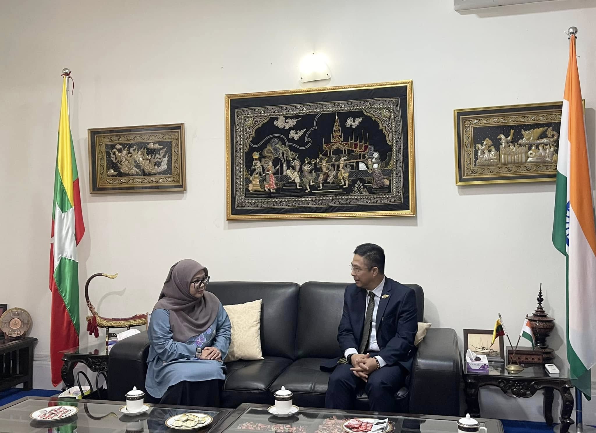 H.E. Mr. Zaw Oo, Ambassador of Myanmar to India, received H.E. Mrs. Siti Arnyfariza binti Mohd Jaini, High Commissioner of Brunei Darussalam to India at 1100 hrs on 20 November 2025 at the Myanmar Embassy in New Delhi.