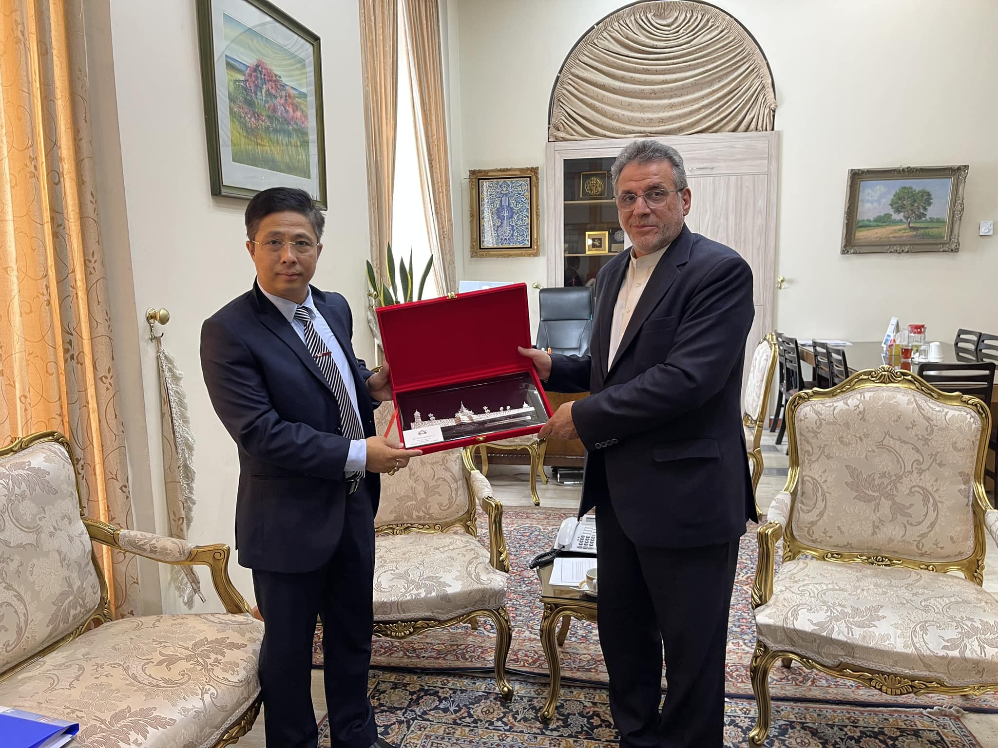 His Excellency Mr. Zaw Oo, Ambassador Extraordinary and Plenipotentiary of the Republic of the Union of Myanmar to the Republic of India, concurrently accredited as Ambassador of Myanmar to the Islamic Republic of Iran, paid a courtesy call on H.E. Mr. Ali Asghar Mohammadi, Director General for East Asia and Oceania, at the Ministry of Foreign Affairs of the Islamic Republic of Iran, on 11 August 2025 at 14:00 hrs. During the meeting, they discussed matters related to the the enhancement of bilateral relations between Myanmar and Iran.